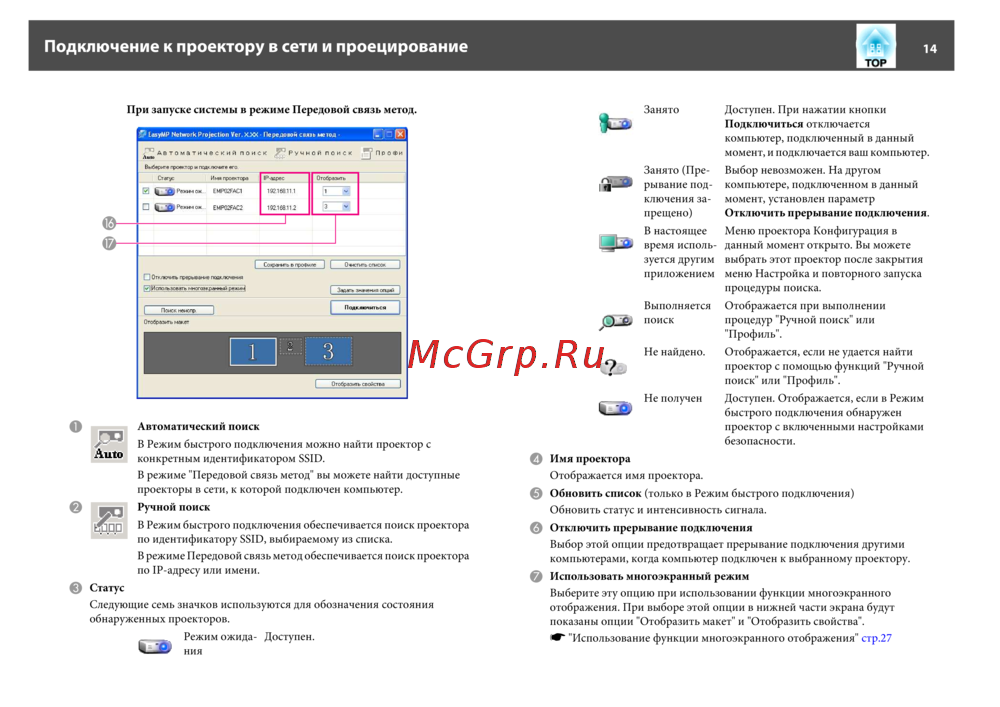 - При подключении с помощью приложения easymp network projection невозможно запустить показ слайдов в powerpoint p.47