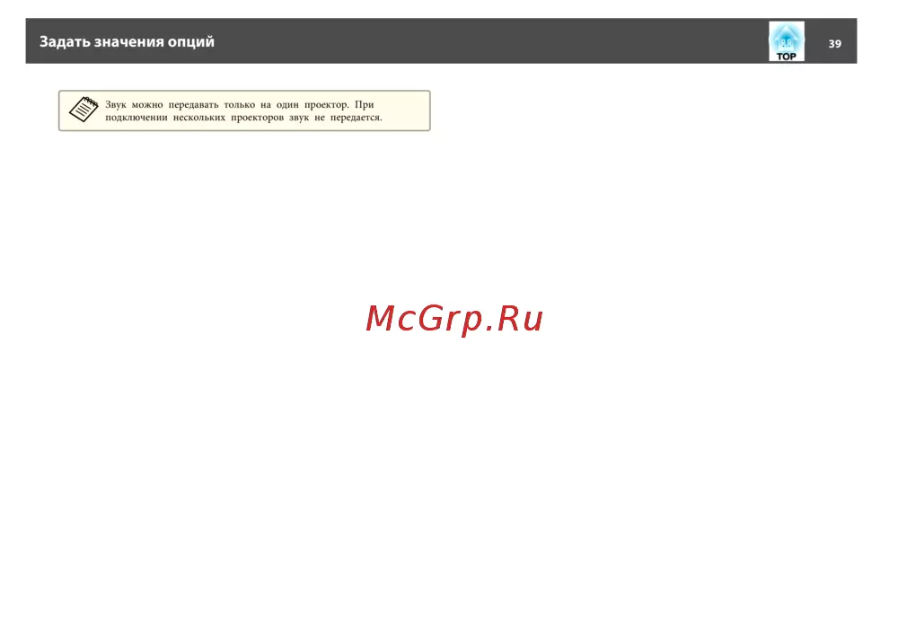 - При подключении с помощью программы easymp network projection отсутствует звук проектора p.47