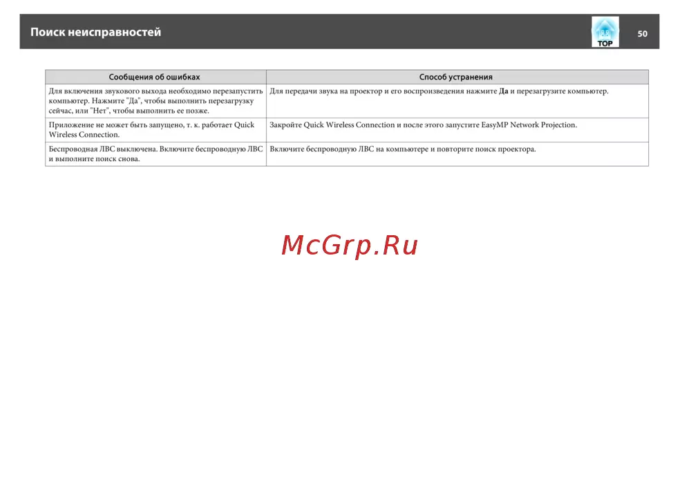 - Не удается соединить проектор и компьютер по беспроводной сети p.43