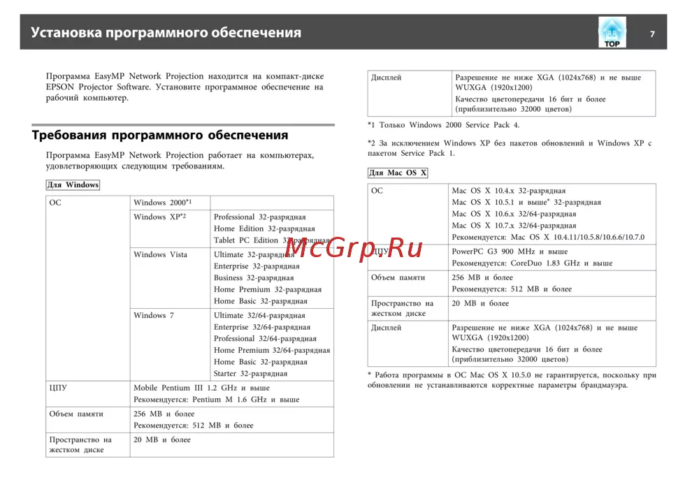 - Программа easymp network projection работает на компьютерах удовлетворяющих следующим требованиям p.7
