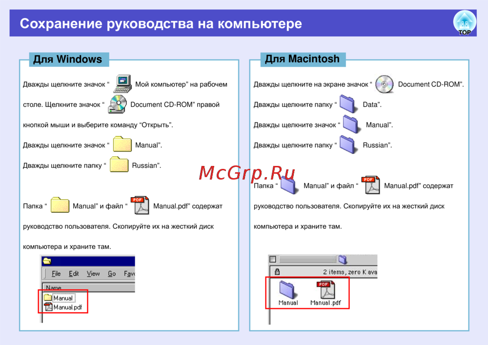Сохранение руководства на компьютере
