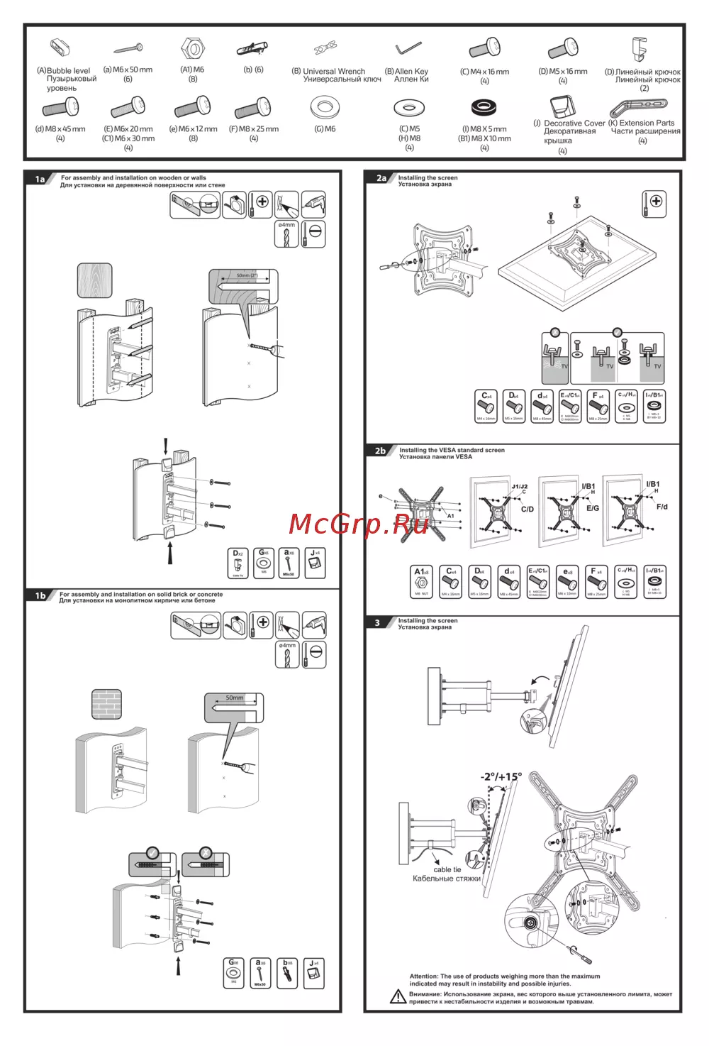 Внимание: Использование экрана, вес которого выше установленного лимита, может