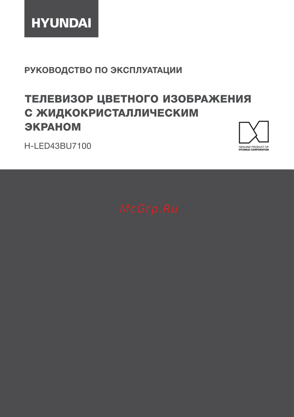 Hyundai H-LED43BU7100 Инструкция по эксплуатации онлайн
