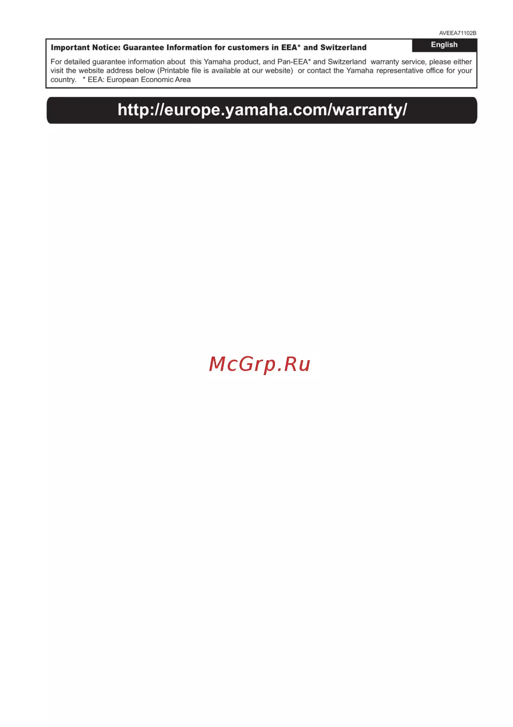 For detailed guarantee information about this Yamaha product, and Pan-EEA* and Switzerland warranty service, please either