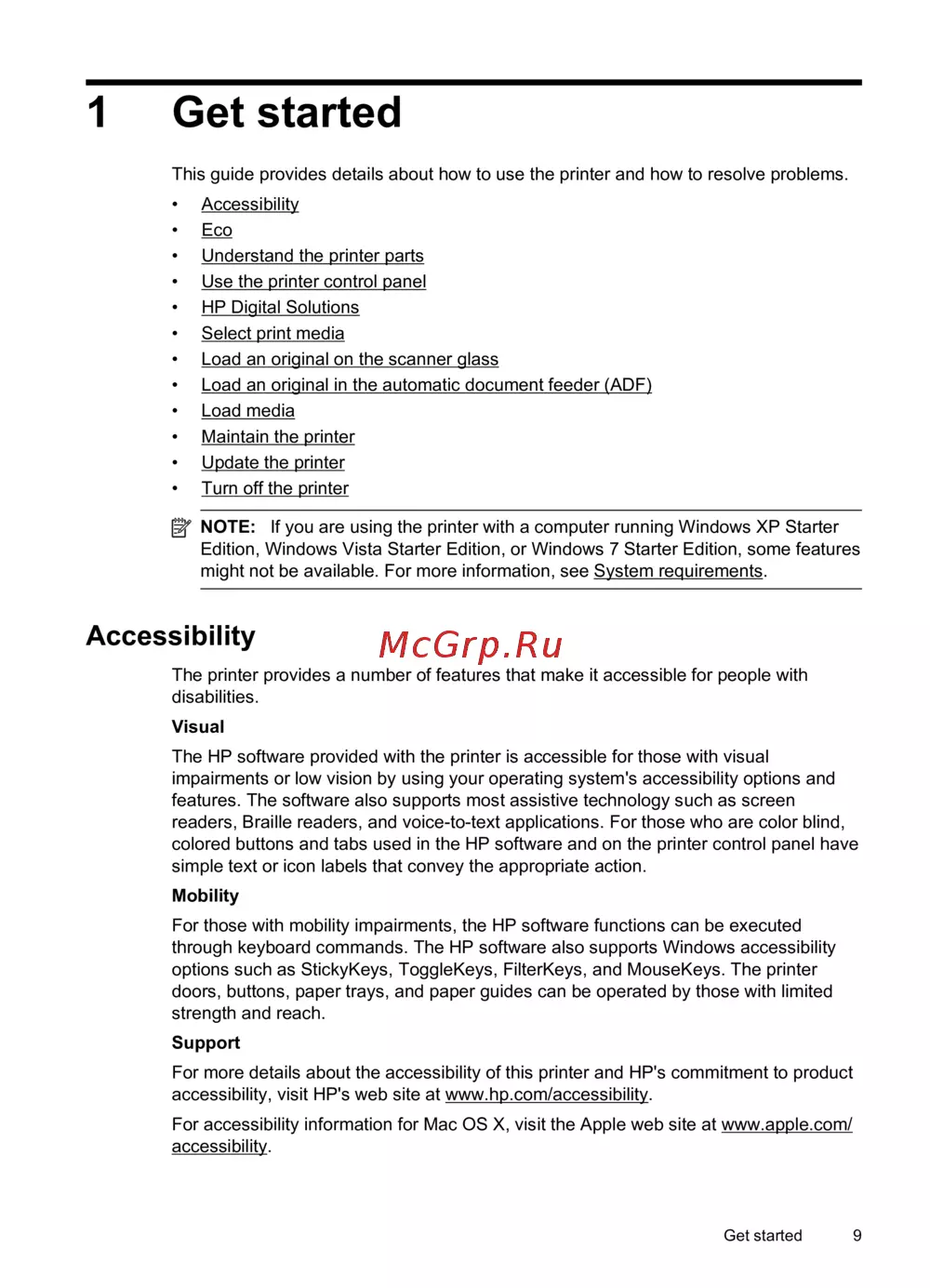 For more details about the accessibility of this printer and HP's commitment to product