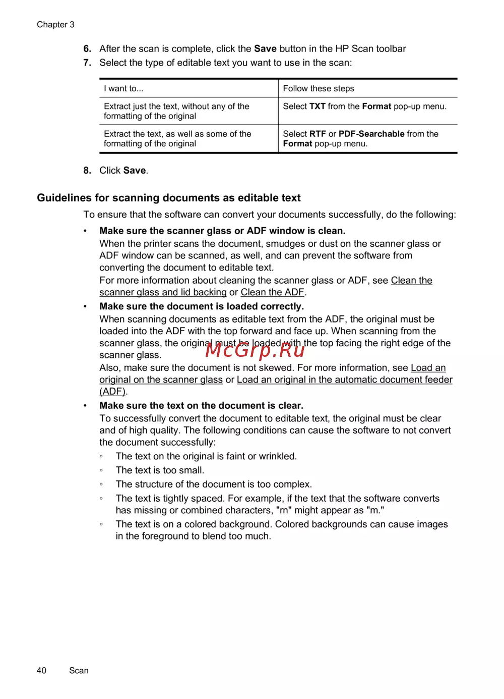 scanner glass, the original must be loaded with the top facing the right edge of the