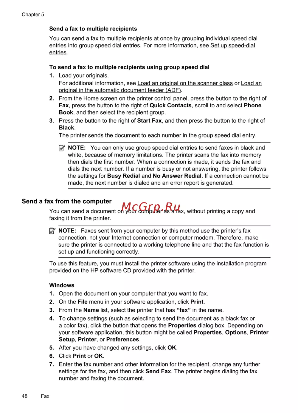 NOTE: Faxes sent from your computer by this method use the printer’s fax
