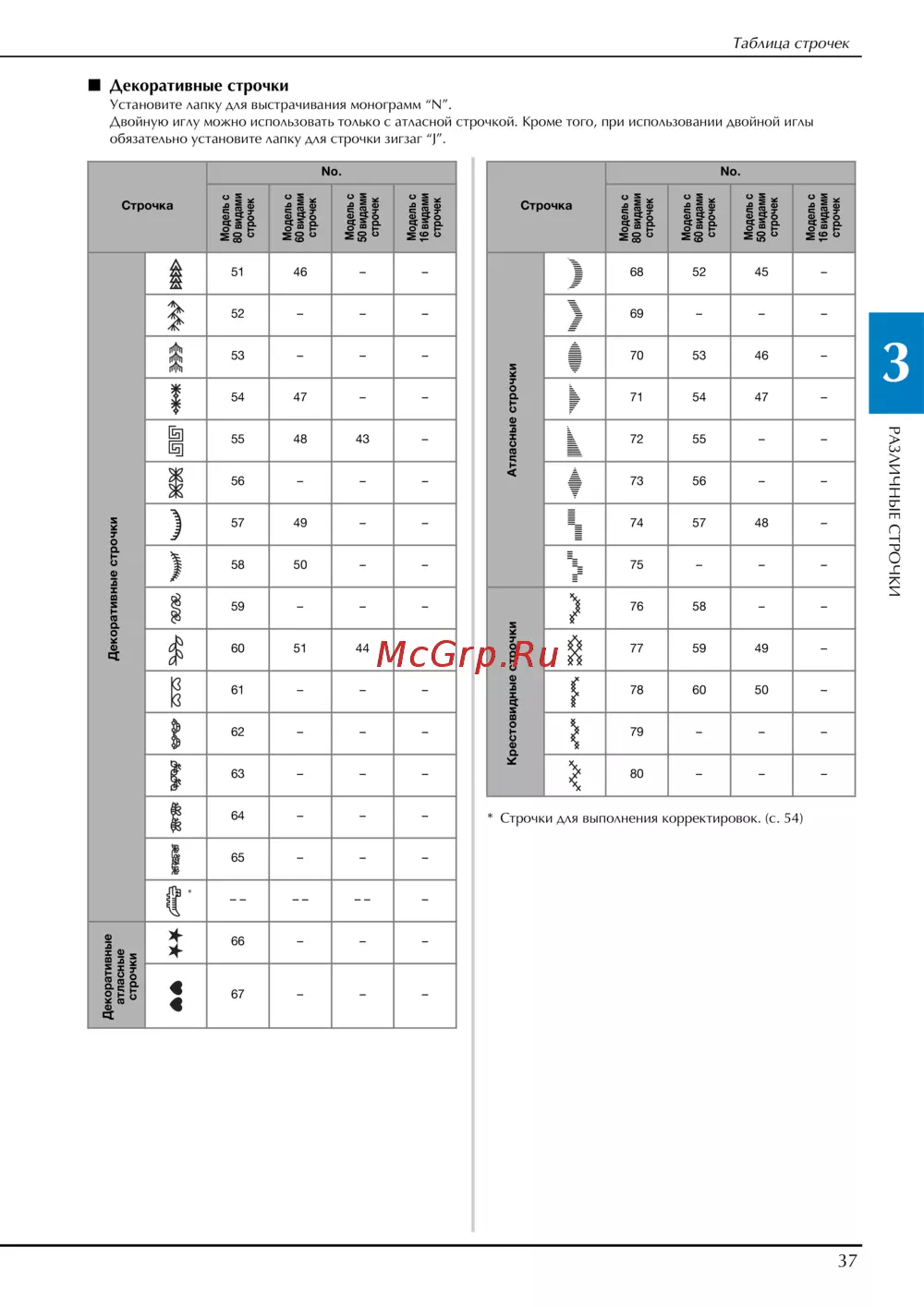 - Коррекция настроек для моделей с 80 60 50 видами строчек 54 p.6