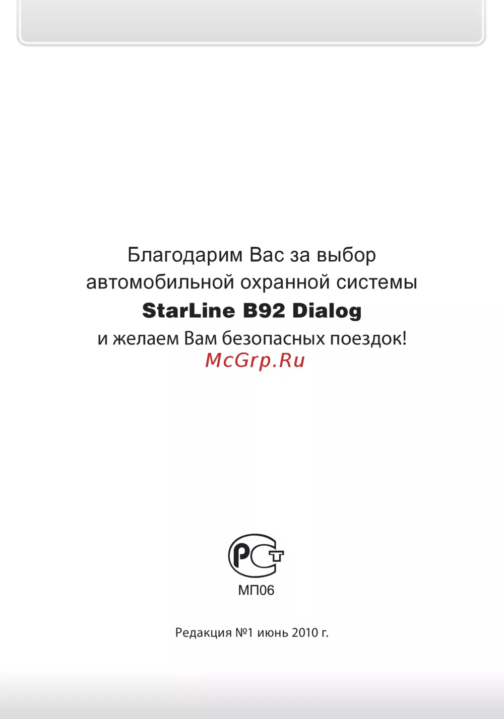 Starline A92 Dialog FLEXРуководство по эксплуатации -