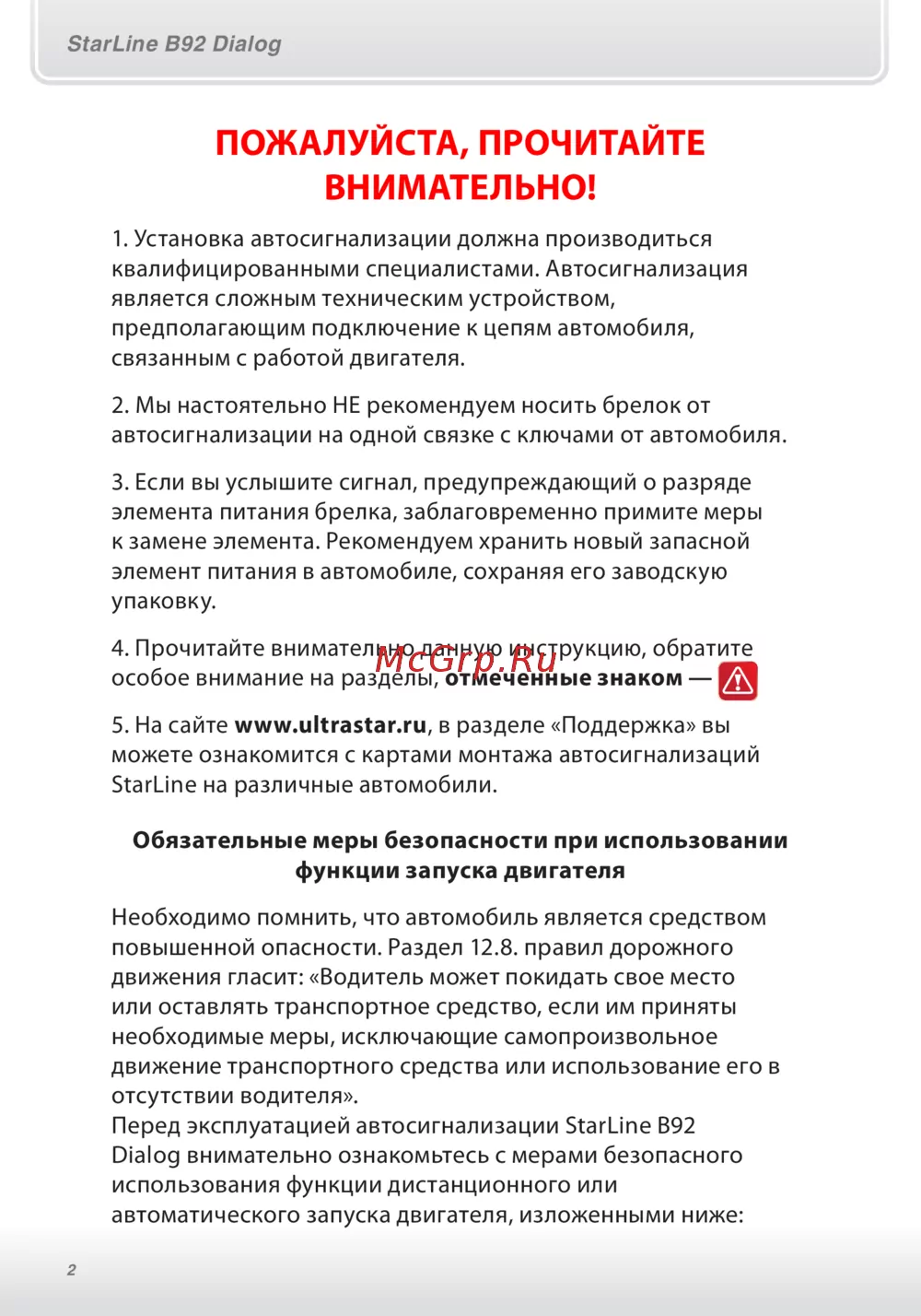 Перед эксплуатацией автосигнализации StarLine В92