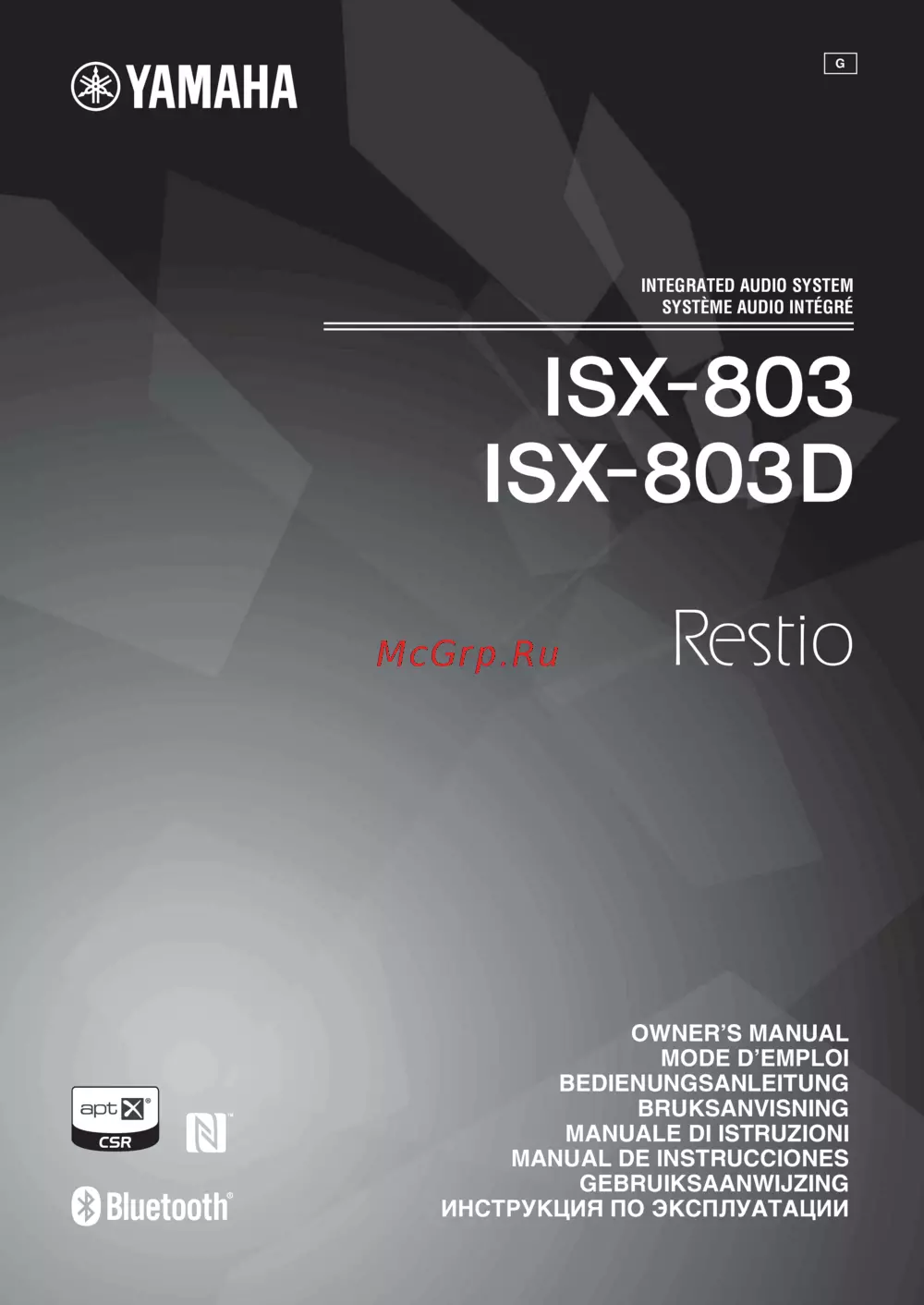 YAMAHA INTEGRATED AUDIO SYSTEM SYSTÈME AUDIO INTÉGRÉ I SX 803 ISX 803D Res По Bluetooth OWNER S MANUAL MODE D EMPLOI BEDIENUNGSANLEITUNG BRUKSANVISNING MANUALE DI ISTRUZIONI MANUAL DE INSTRUCCIONES GEBRUIKSAANWIJZING ИНСТРУКЦИЯ ПО ЭКСПЛУАТАЦИИ