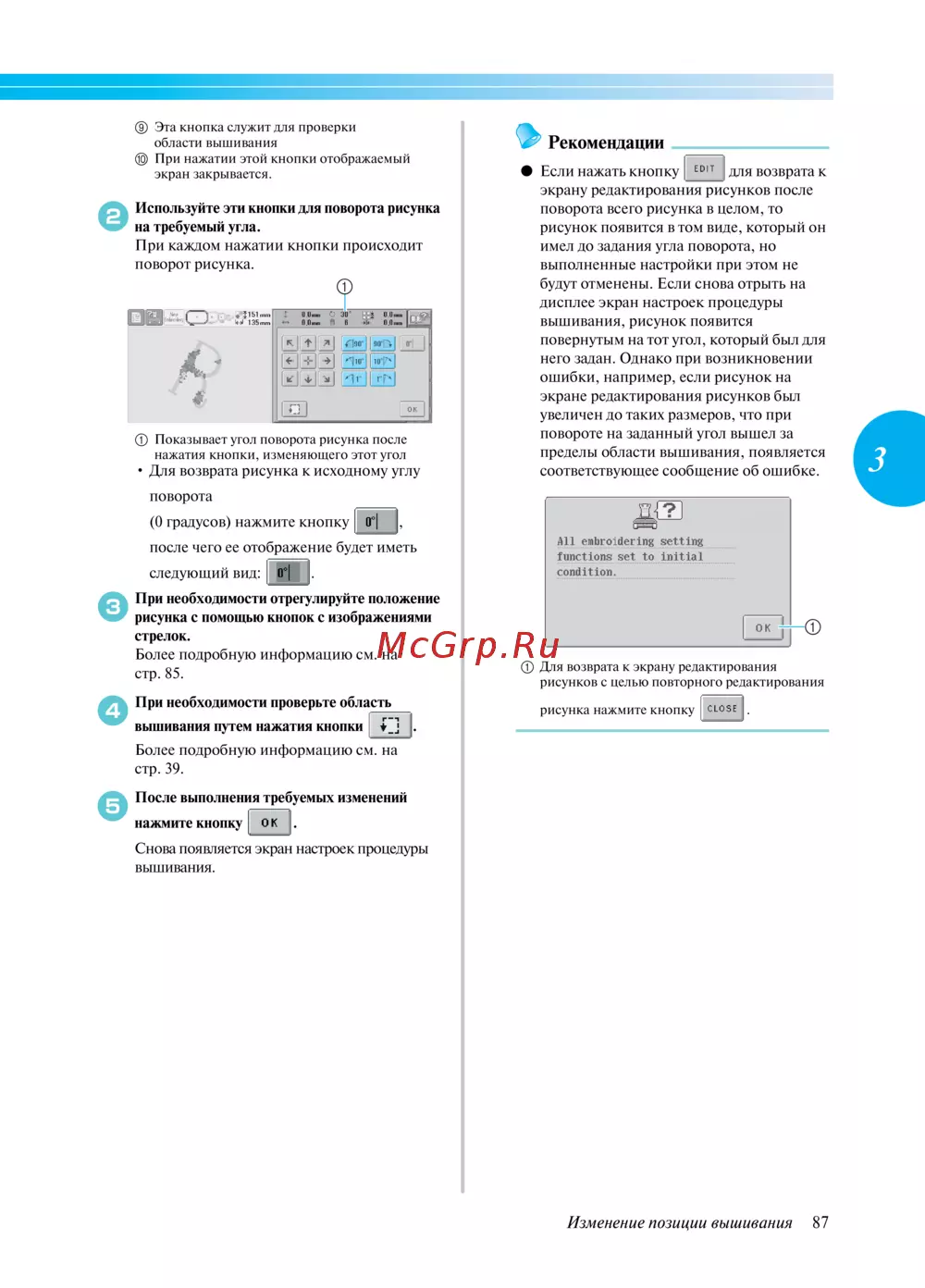 Brother PR-600IIC — инструкция по изменению позиции вышивания и настройкам [106]