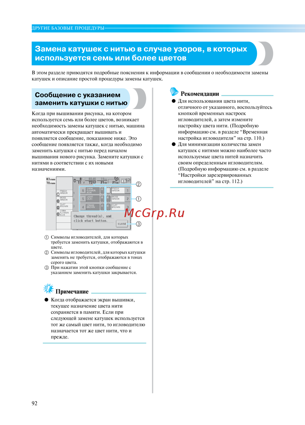 - Используйте только шпульки входящие в комплект поставки данного устройства намотки шпулек p.231
