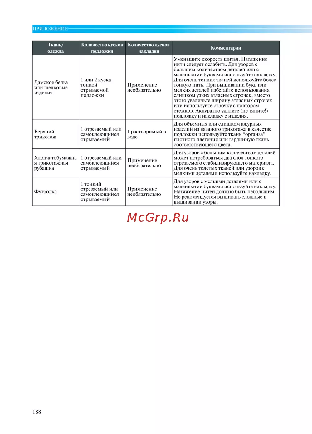Brother PR-600IIC — рекомендации по шитью и вышивке для тонких тканей [207]