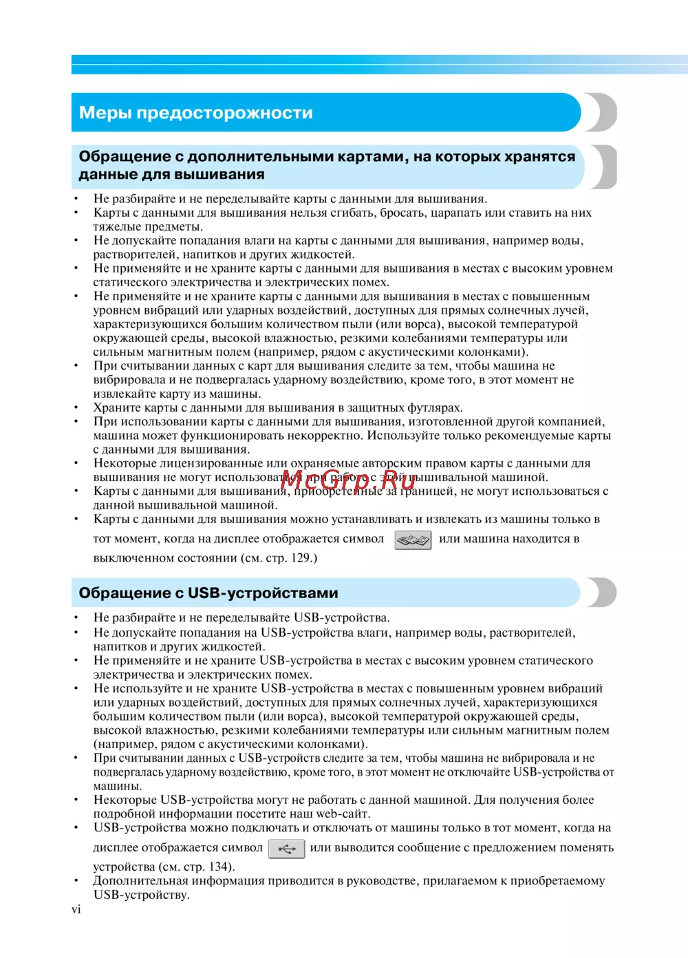• Не разбирайте и не переделывайте карты с данными для вышивания.