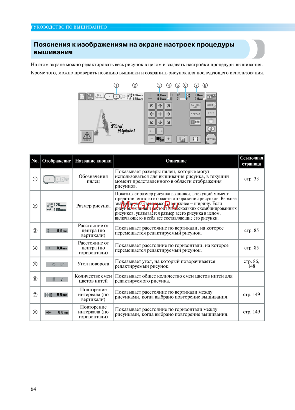 - Не выполняйте вышивание более чем на четырех перекрывающихся уровнях p.230