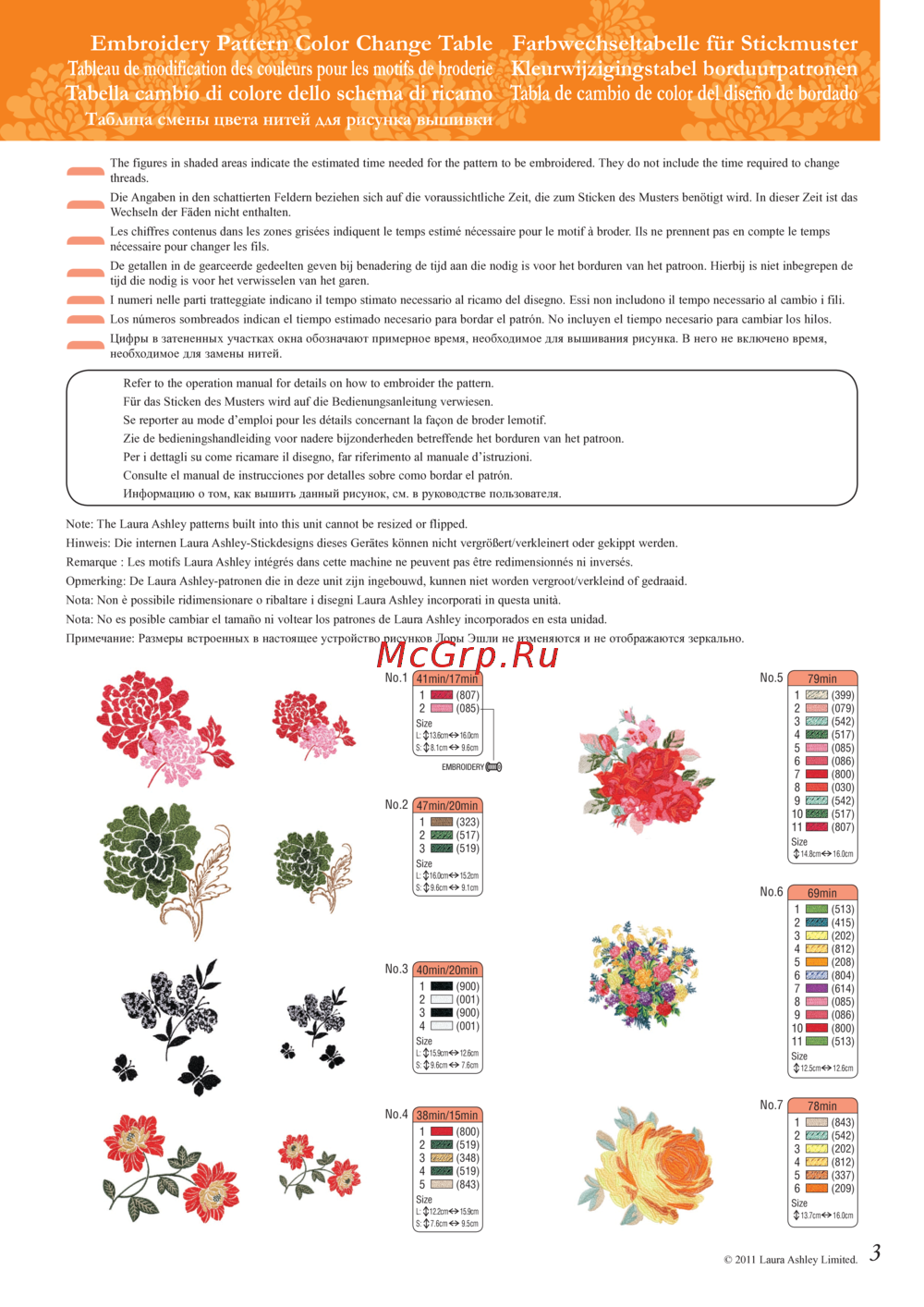 - Embroidery pattern color change table farbwechseltabelle für stickmuster tableau de modification des couleurs pour les motifs de broderie kleurwijzigingstabel borduurpatronen tabella cambio di colore dello schema di ricamo tabla de cambio de color del diseño de bordado таблица смены цвета нитей для рисунка вышивки p.7