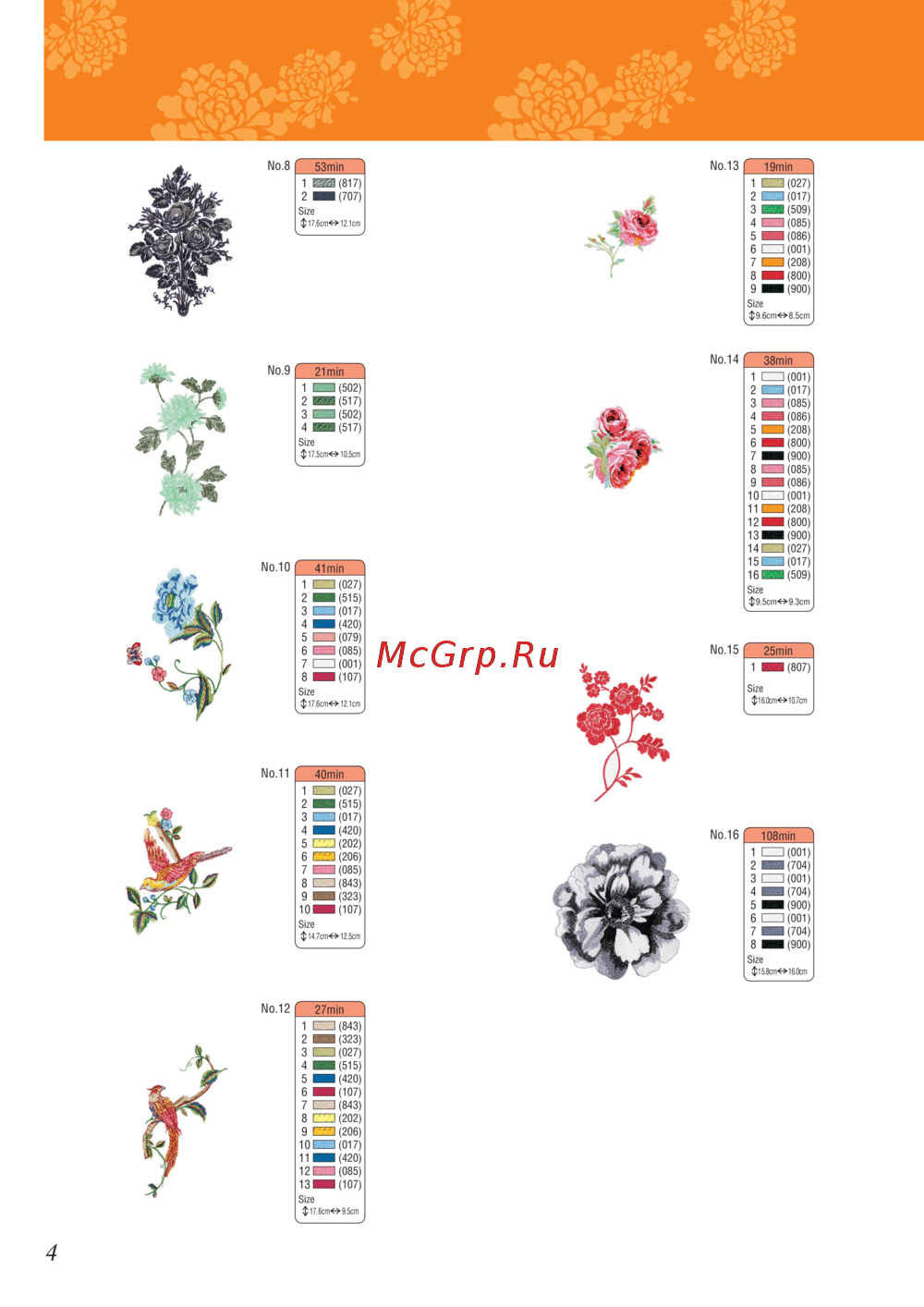 - Embroidery pattern color change table farbwechseltabelle für stickmuster tableau de modification des couleurs pour les motifs de broderie kleurwijzigingstabel borduurpatronen tabella cambio di colore dello schema di ricamo tabla de cambio de color del diseño de bordado таблица смены цвета нитей для рисунка вышивки p.7