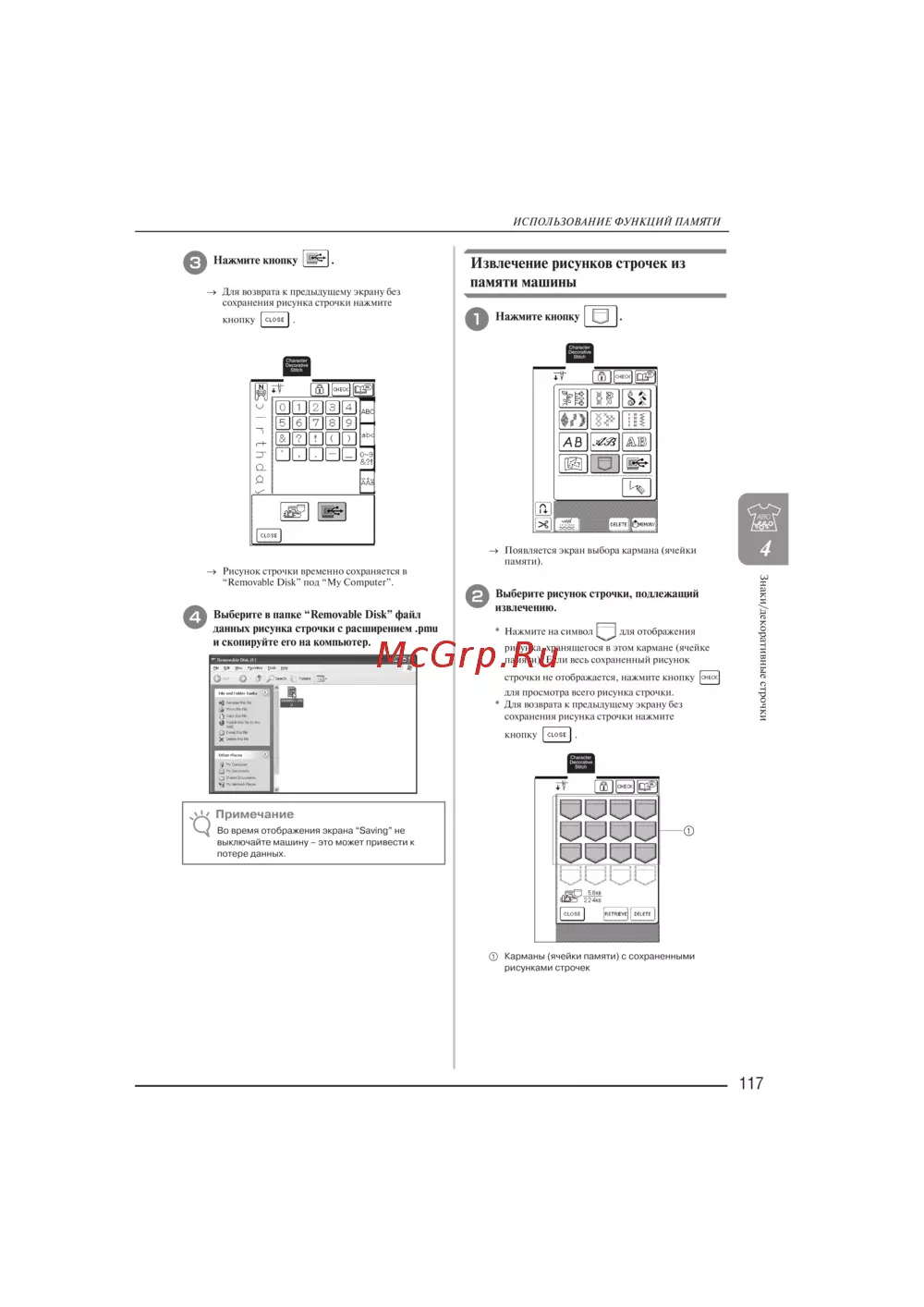 Brother INNOV-IS 2200 LAURA ASHLEY — использование функций памяти для сохранения рисунков строчек [119]