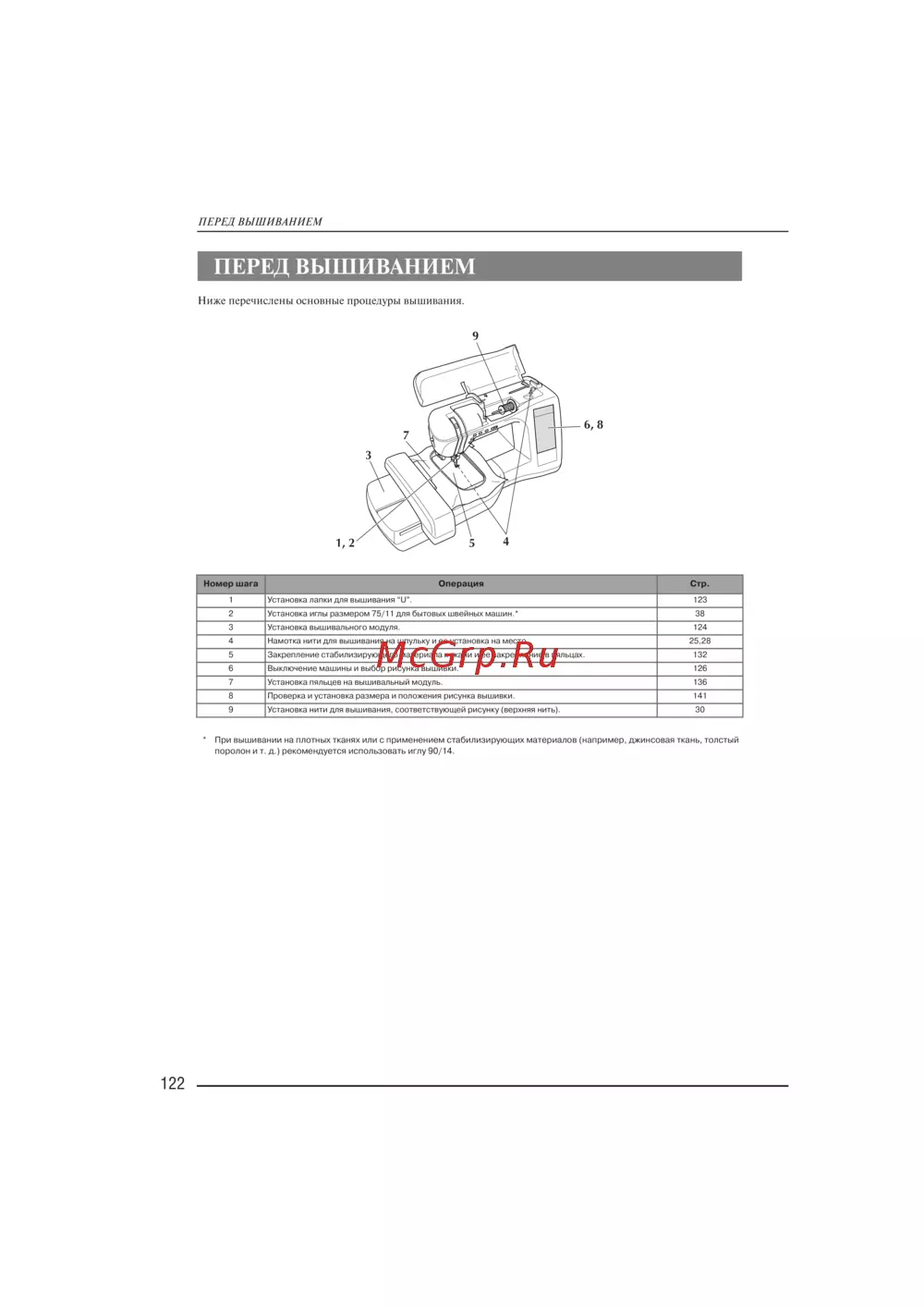 - Данное руководство по эксплуатации и педаль могут находиться в жестком футляре машины p.14