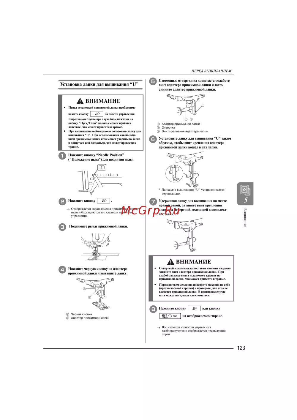 ![Brother INNOV-IS 2200 LAURA ASHLEY [125/0] Установка лапки для вышивания u](/views2/1026175/page125/bg7d.png)