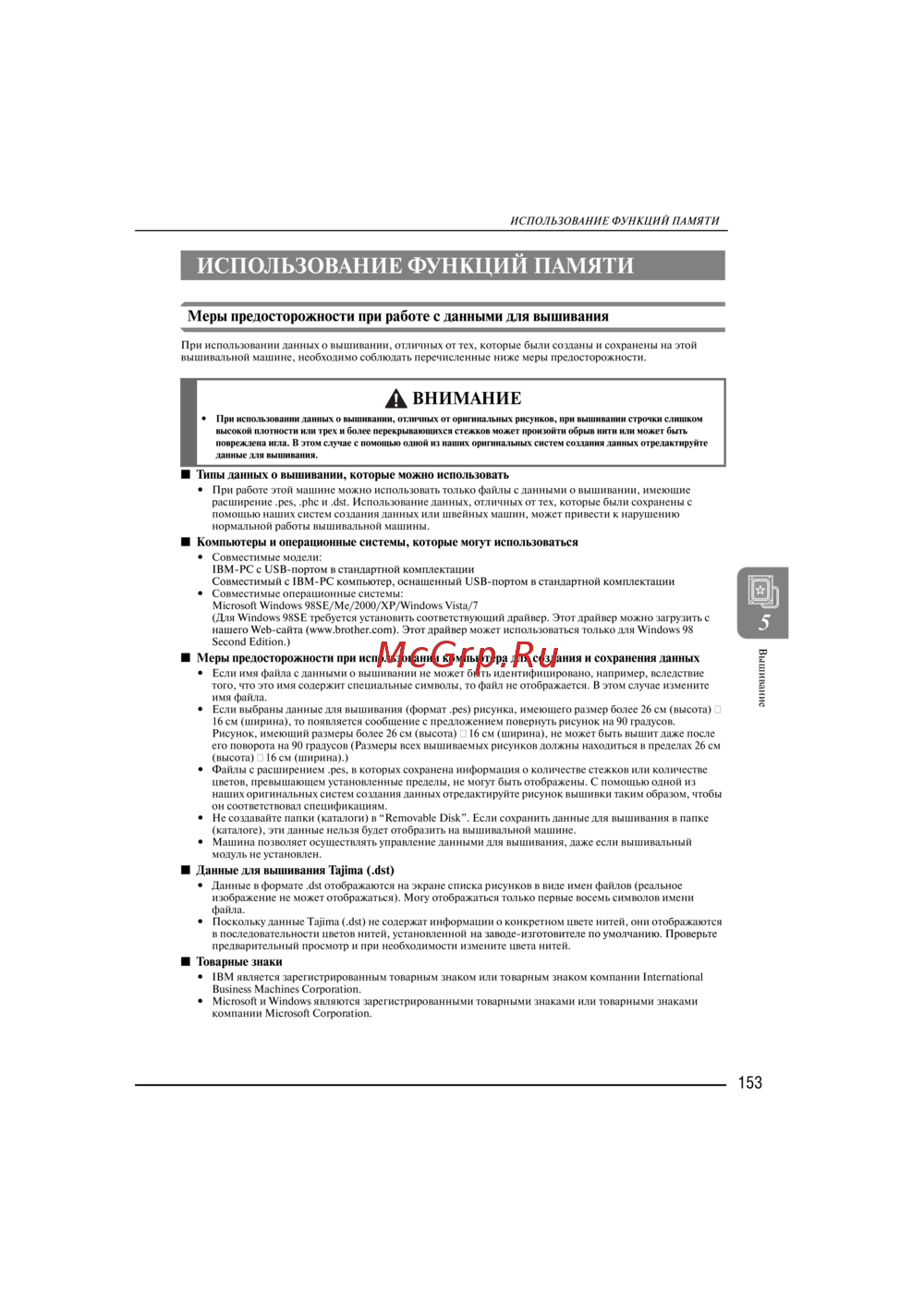 помощью наших систем создания данных или швейных машин, может привести к нарушению