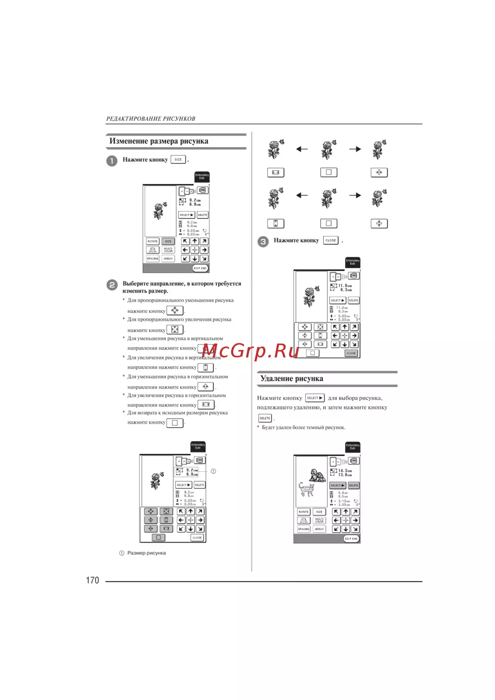 Brother INNOV-IS 2200 LAURA ASHLEY — инструкции по редактированию и изменению размера рисунков [172]