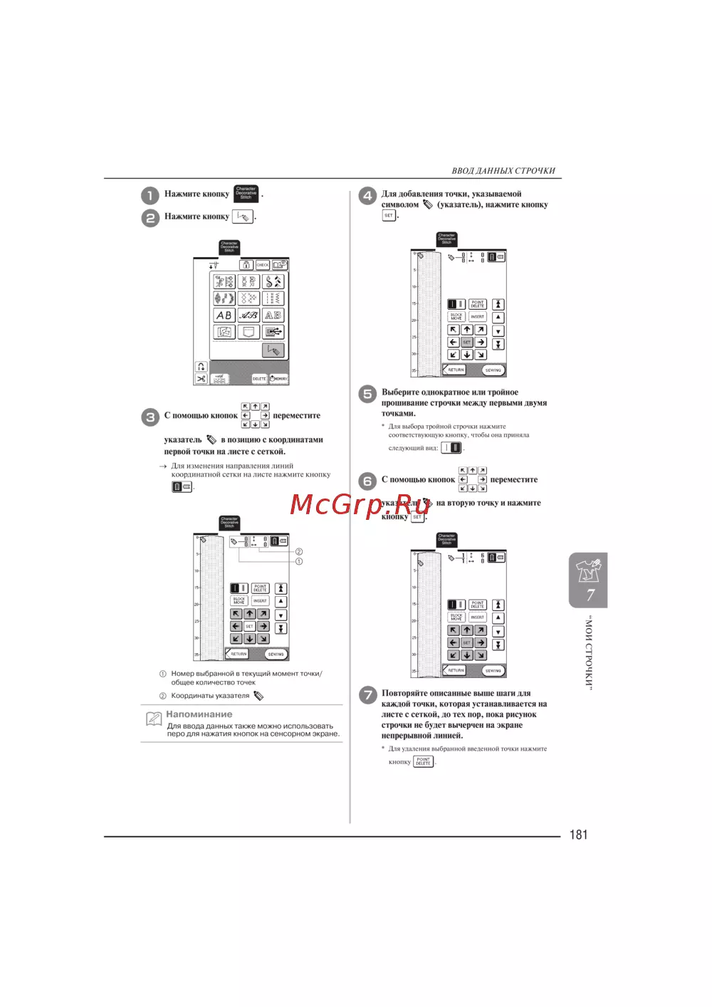 Brother INNOV-IS 2200 LAURA ASHLEY — инструкция по вводу данных и созданию линий на сетке [183]