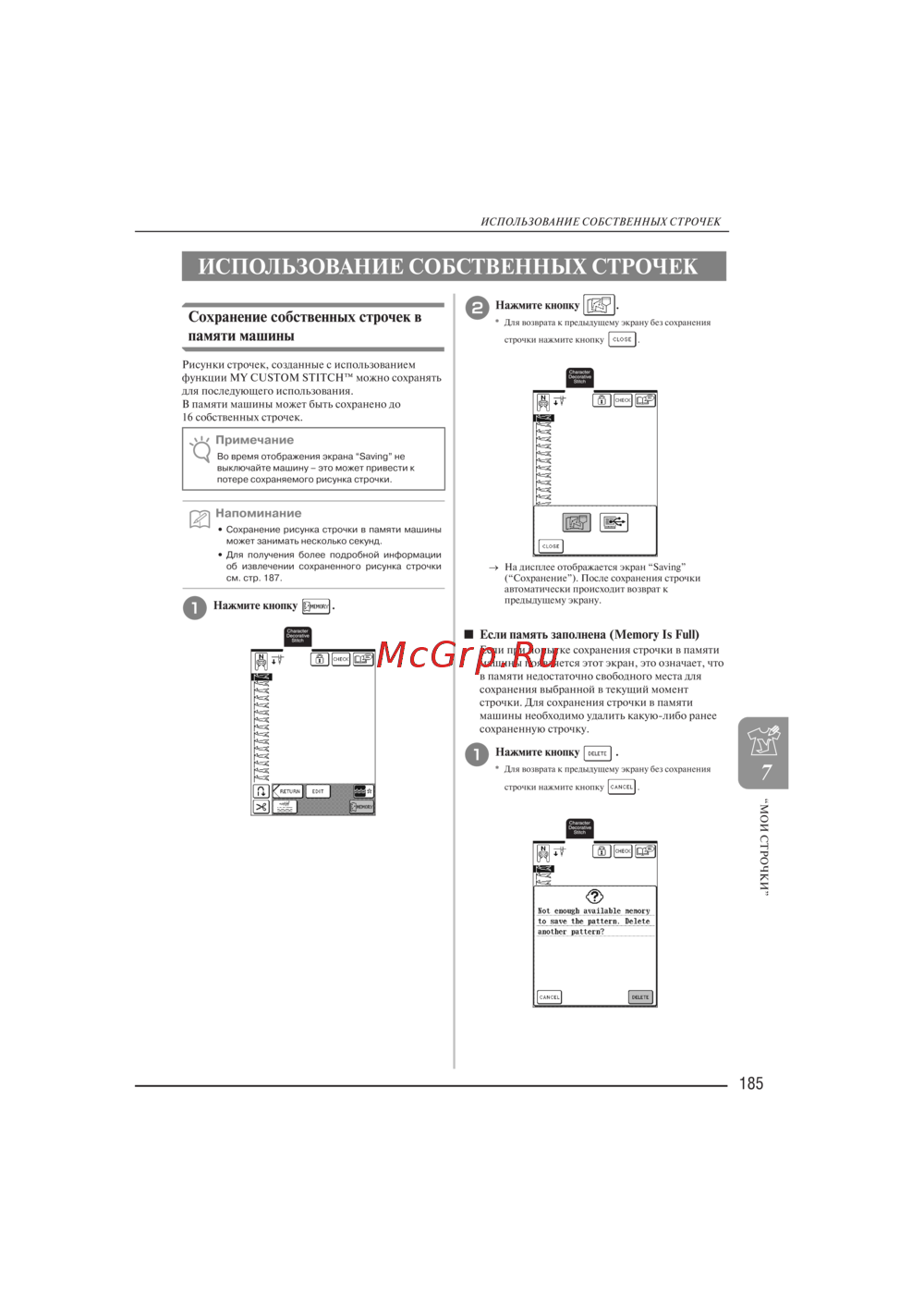 Brother INNOV-IS 2200 LAURA ASHLEY — сохранение собственных строчек в памяти машины для шитья [187]