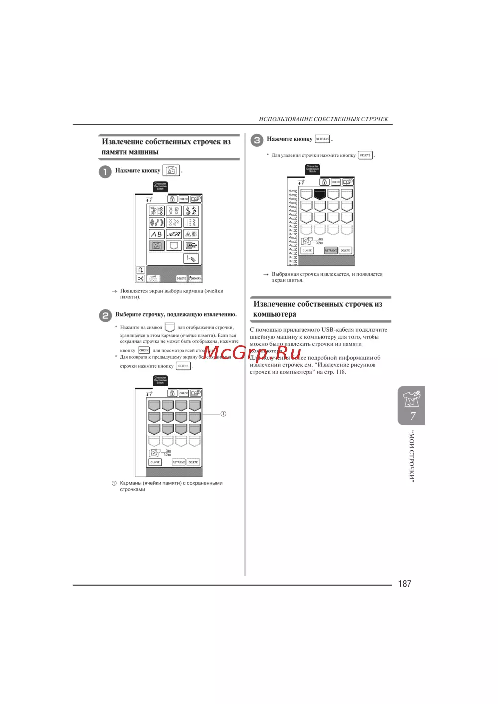 Узнайте, как извлекать собственные строчки из памяти швейной машины и компьютера. Пошаговая инструкция для удобного использования функций.