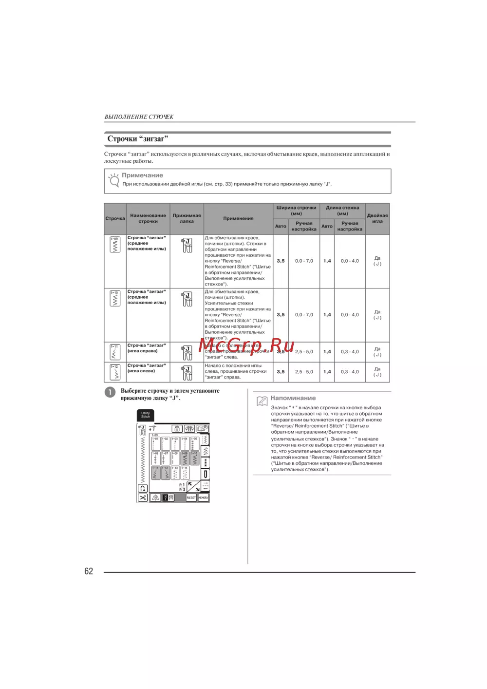 Узнайте о строчке зигзаг, ее применении для обметывания краев и починки. Подробные настройки и советы по использованию прижимной лапки.