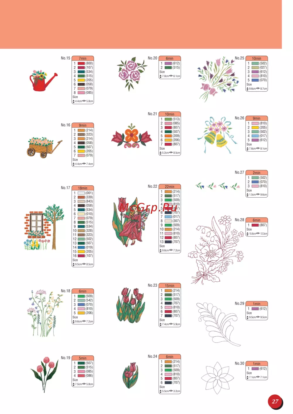 - Embroidery pattern color change table stickmuster farbtabelle tableau de changement de couleur des motifs de broderie kleurwijzigingstabel voor de borduurpatronen tabella di cambiamento colori degli schemi di ricamo tabla de cambio de color para patrones de bordado таблица смены цвета нитей для рисунка вышивки p.39