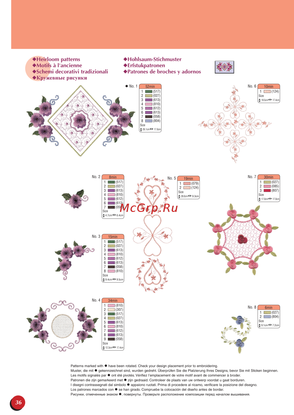 - Embroidery pattern color change table stickmuster farbtabelle tableau de changement de couleur des motifs de broderie kleurwijzigingstabel voor de borduurpatronen tabella di cambiamento colori degli schemi di ricamo tabla de cambio de color para patrones de bordado таблица смены цвета нитей для рисунка вышивки p.35
