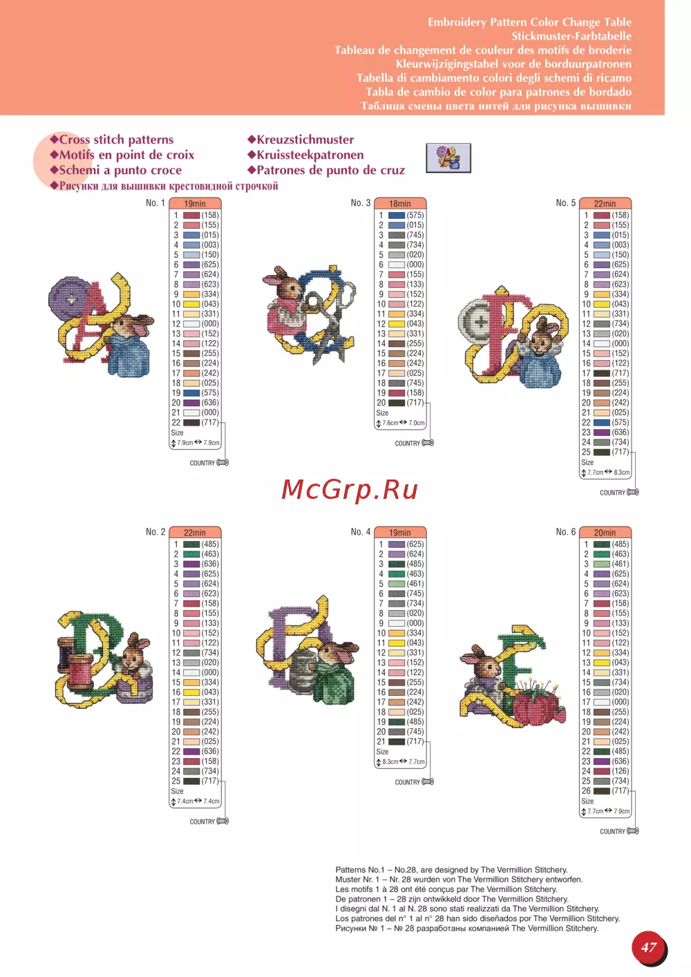 - Embroidery pattern color change table stickmuster farbtabelle tableau de changement de couleur des motifs de broderie kleurwijzigingstabel voor de borduurpatronen tabella di cambiamento colori degli schemi di ricamo tabla de cambio de color para patrones de bordado таблица смены цвета нитей для рисунка вышивки p.47