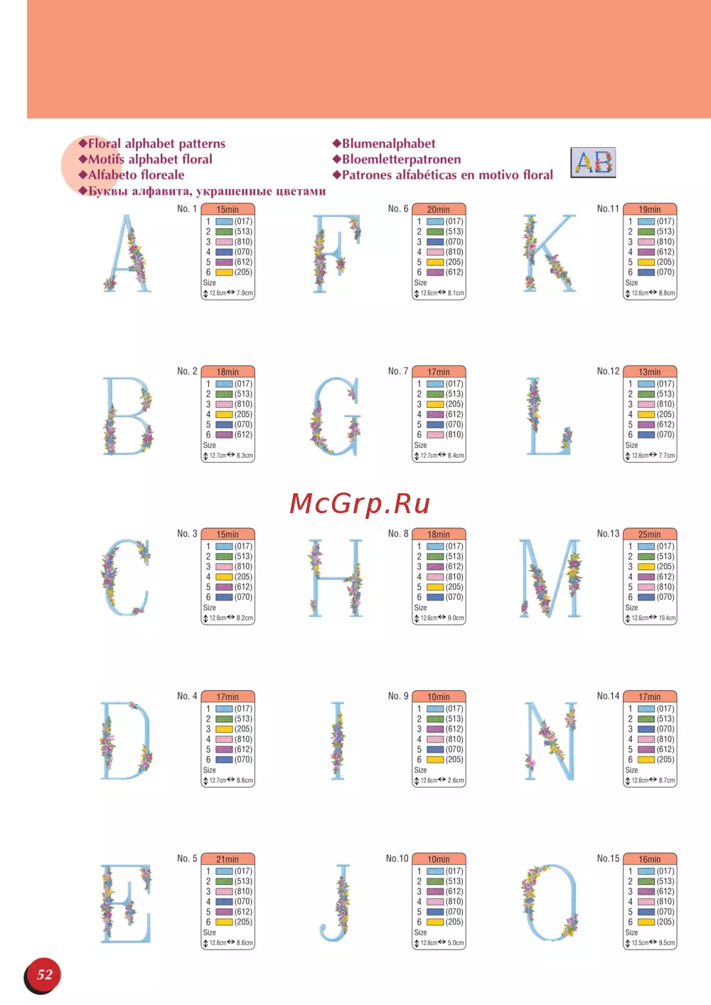 - Floral alphabet patterns blumenalphabet motifs alphabet floral bloemletterpatronen alfabeto floreale patrones alfabéticas en motivo floral буквы алфавита украшенные цветами p.54