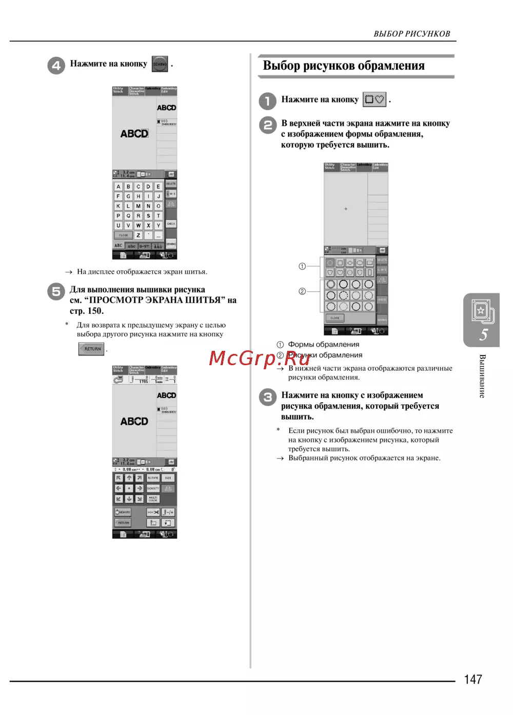 см. “ПРОСМОТР ЭКРАНА ШИТЬЯ” на