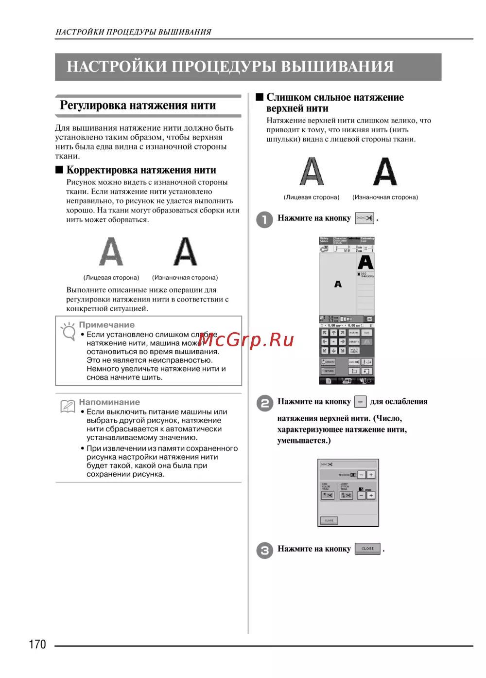 - А затем на кнопку можно во время шитья получить рекомендации по решению незначительных проблем для возврата к первоначальному экрану в любой момент нажмите на p.246