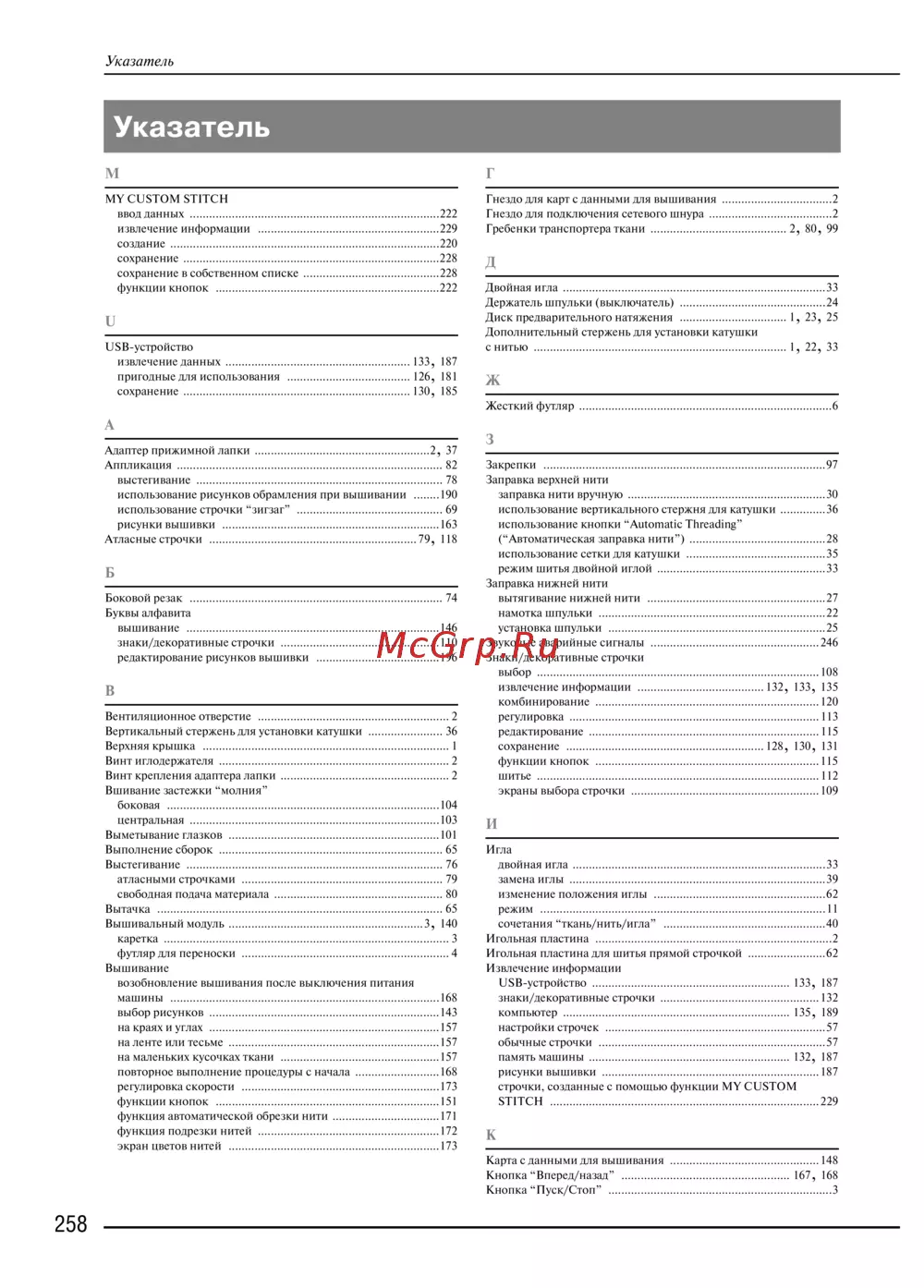 Изучите полный указатель функций швейных машин, включая создание, сохранение и извлечение данных. Узнайте о различных техниках и инструментах для шитья.