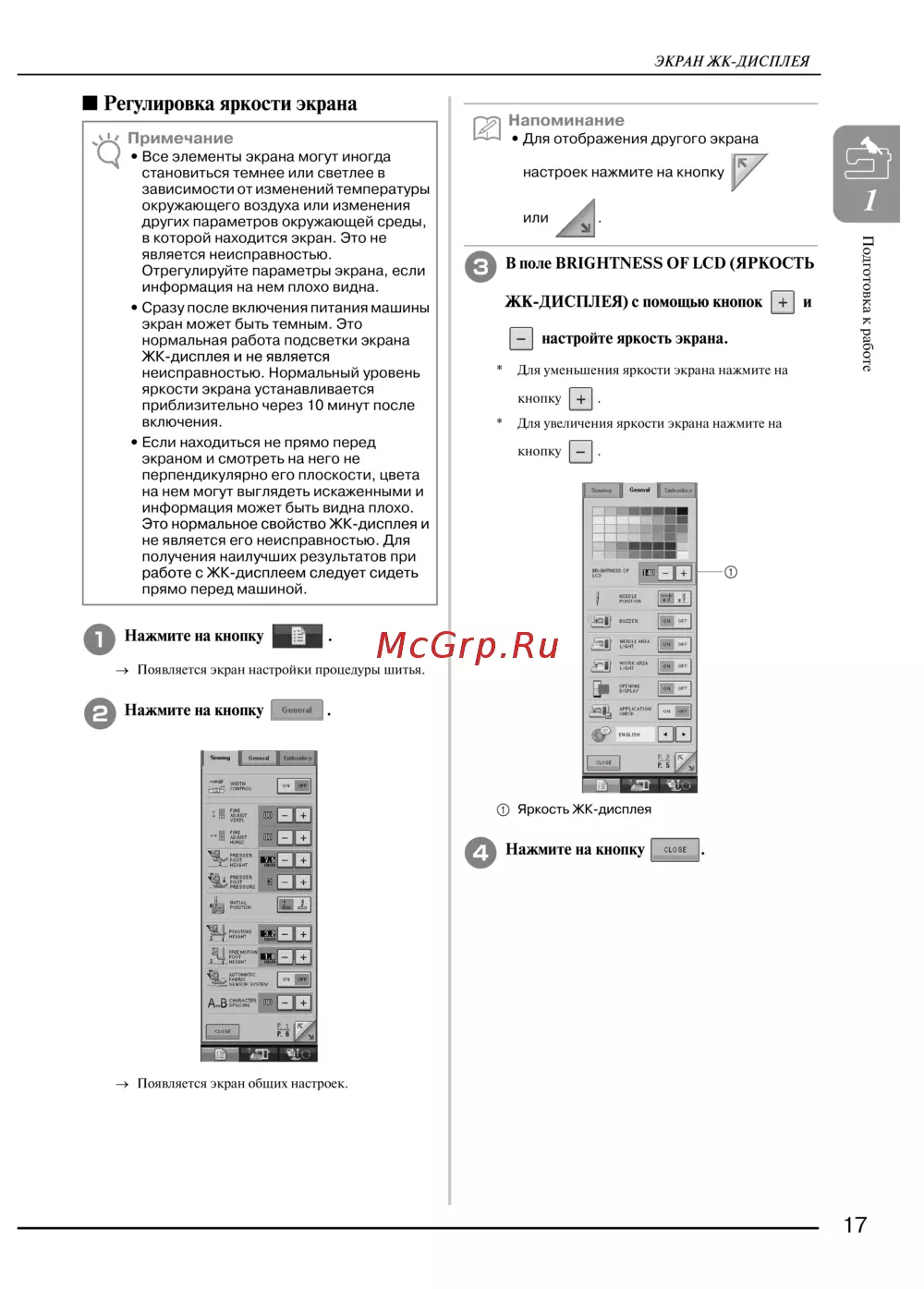 Brother INNOV-IS 5000 LAURA ASHLEY — регулировка яркости экрана: пошаговая инструкция [27]