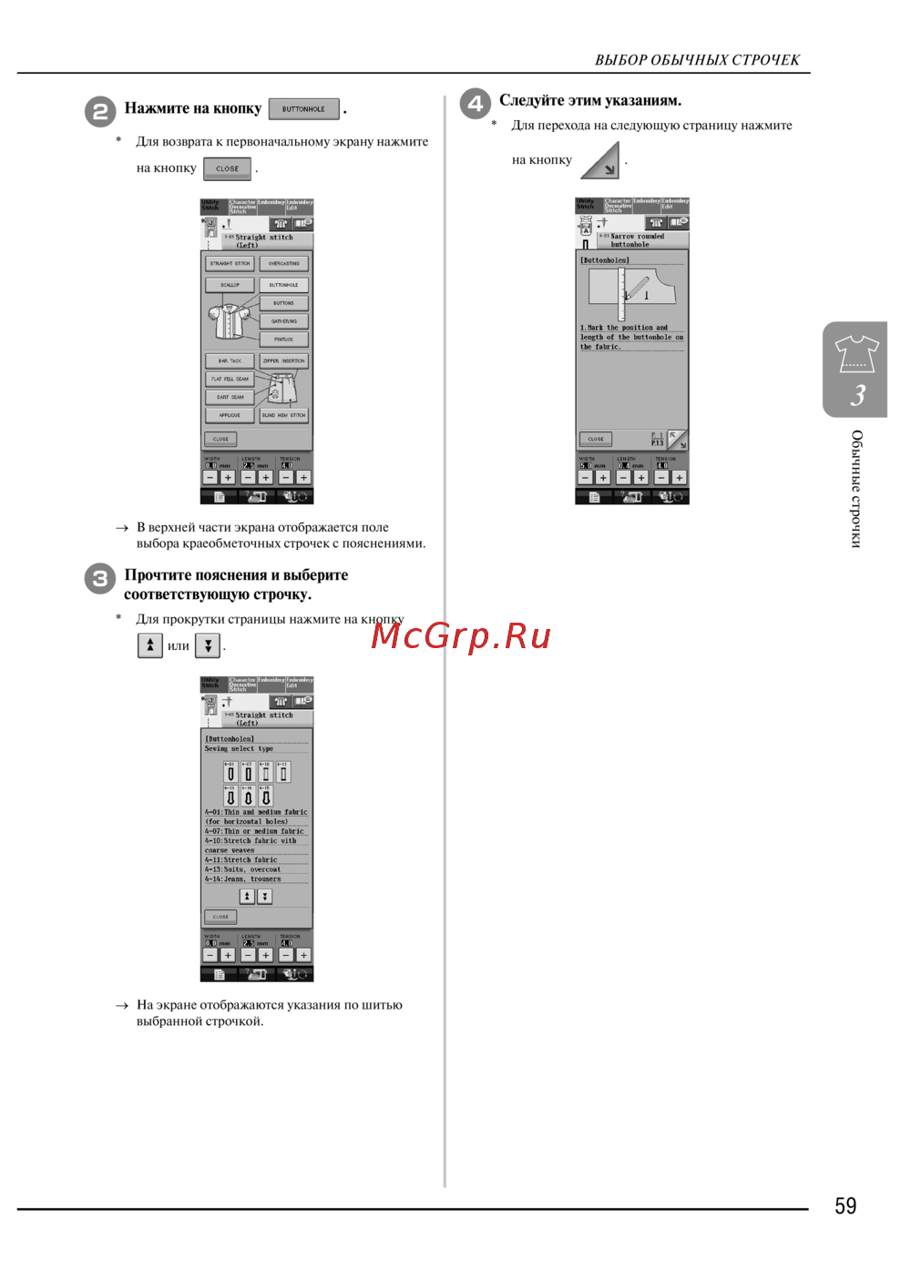 - А затем на кнопку можно во время шитья получить рекомендации по решению незначительных проблем для возврата к первоначальному экрану в любой момент нажмите на p.246