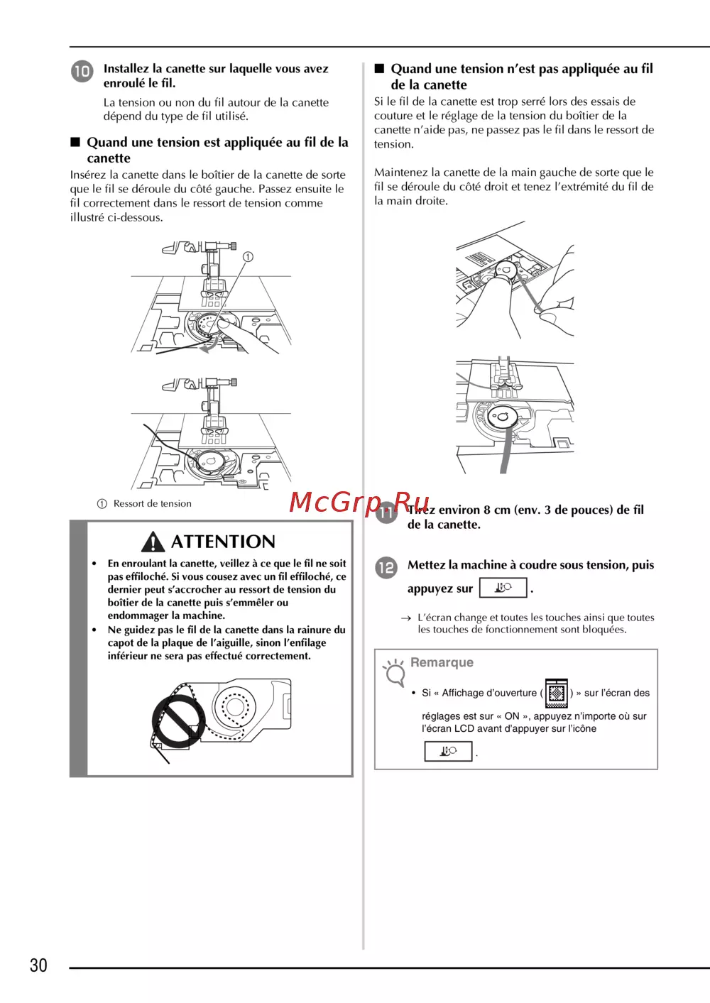 • En enroulant la canette, veillez à ce que le fil ne soit