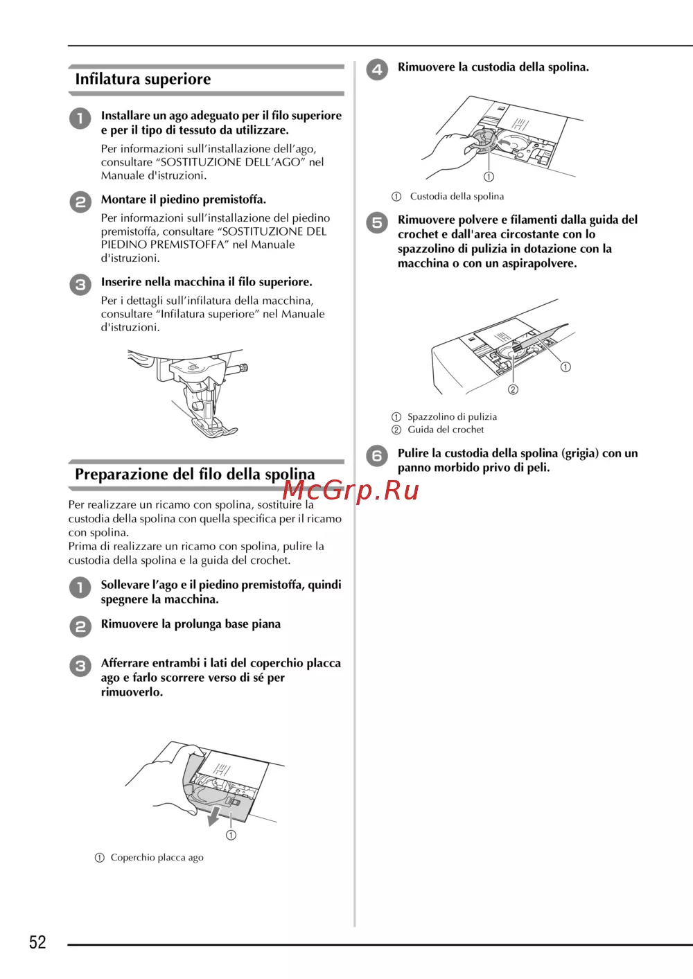 Brother INNOV-IS NX-2000 LAURA ASHLEY — guida all'infilatura e alla preparazione della spolina per ricamo [54]