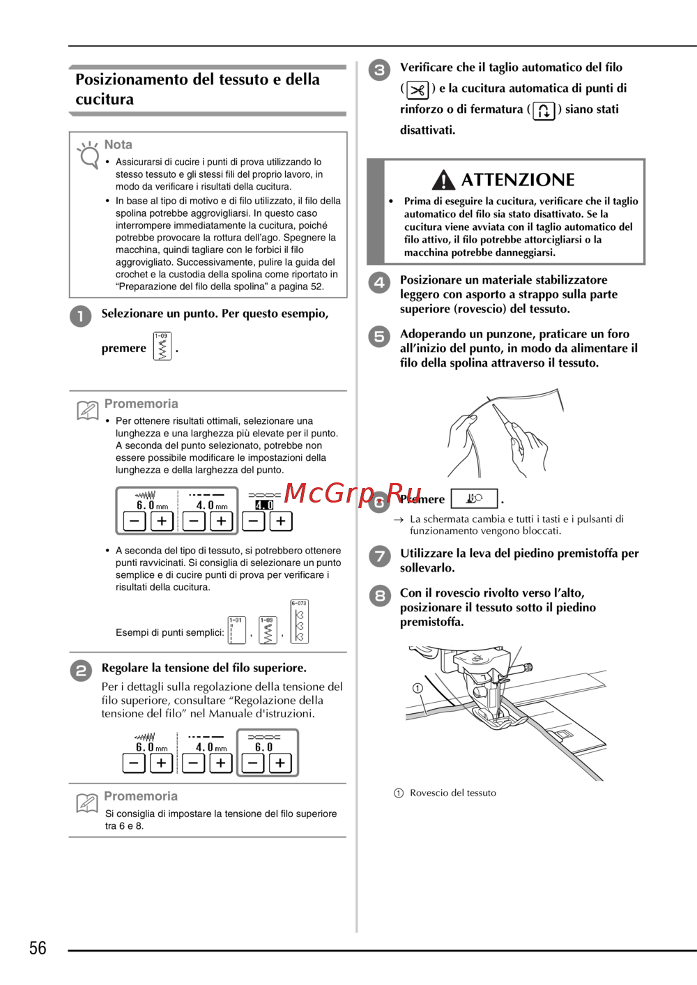 - Не тяните нить слишком сильно так как в противном случае возможно повреждение машины p.85