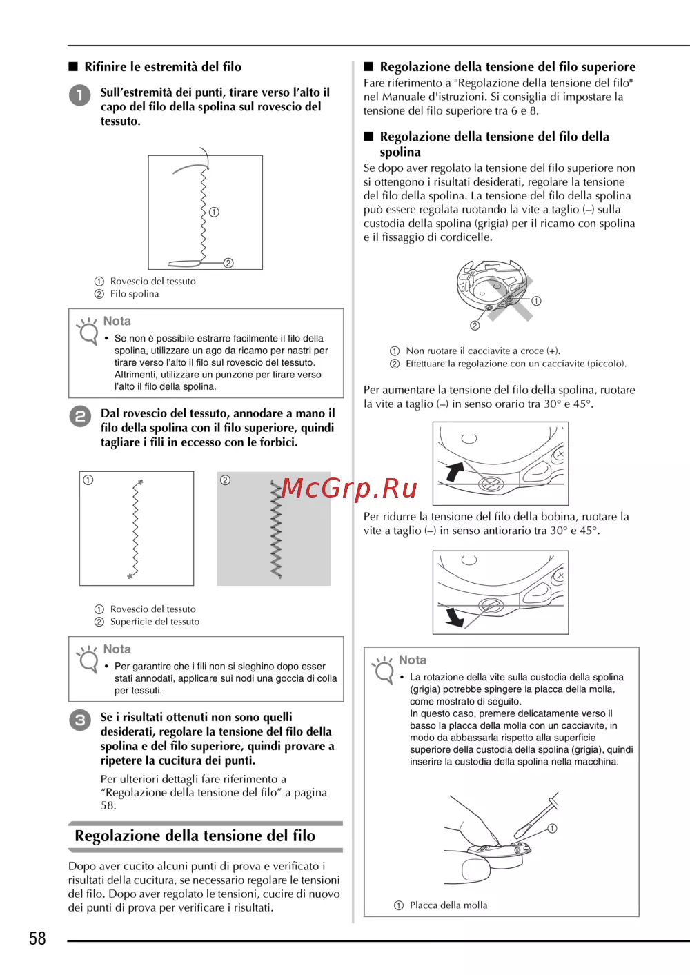 - Не тяните нить слишком сильно так как в противном случае возможно повреждение машины p.85