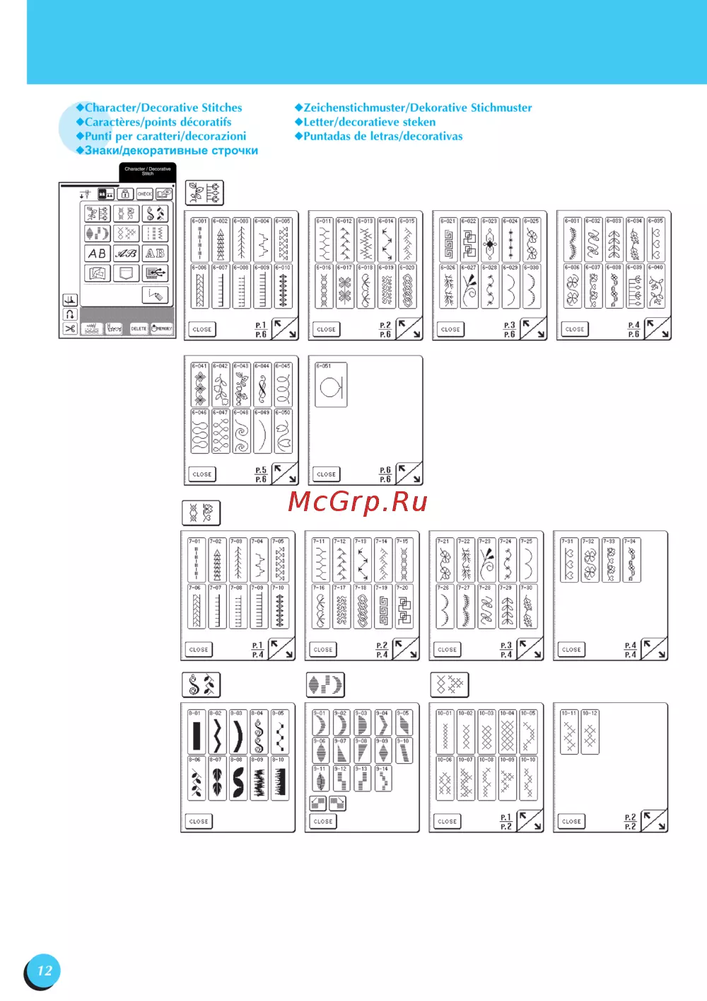 - Kiezen van de steekpatronen selezione degli schemi punto selección de tipos de puntada выборрисунковстрочек p.11