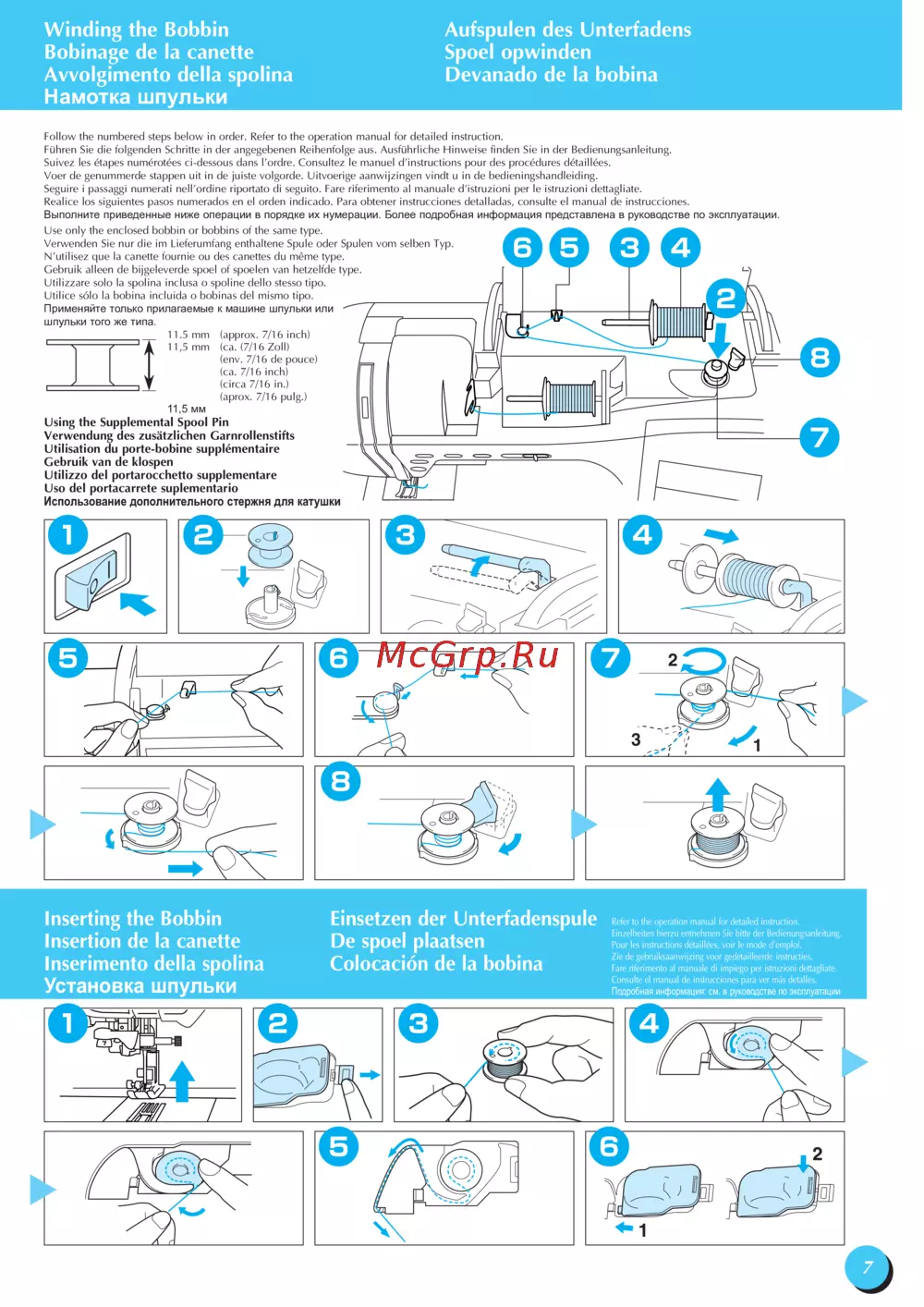 - Winding the bobbin aufspulen des unterfadens bobinage de la canette spoel opwinden avvolgimento della spolina devanado de la bobina намотка шпульки p.9