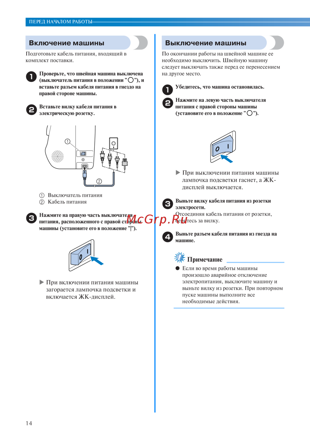 Brother INNOV-IS 20 LE [16/0] При включении питания машины загорается лампочка подсветки и включается жк дисплей