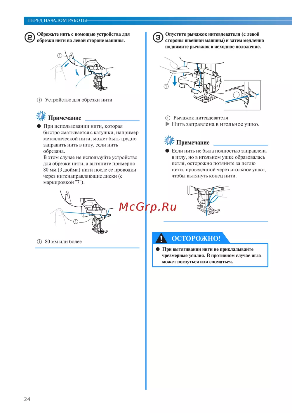 - Подготовка к заправке верхней и нижней нити 15 p.8