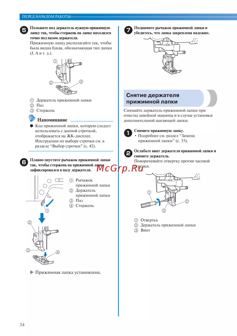 - Замена прижимной лапки 33 p.8