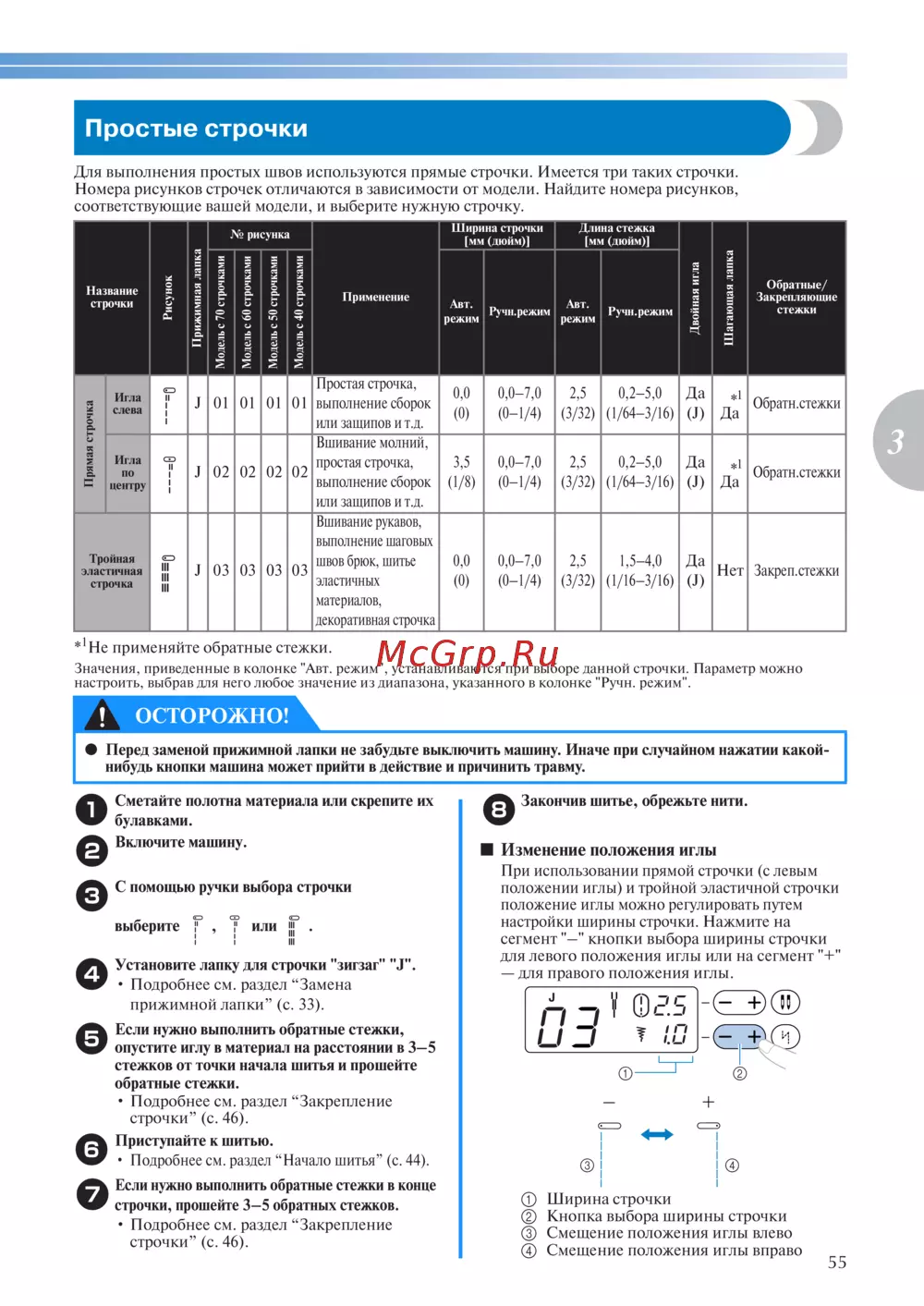 Для выполнения простых швов используются прямые строчки. Имеется три таких строчки.